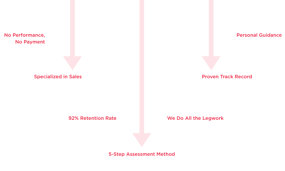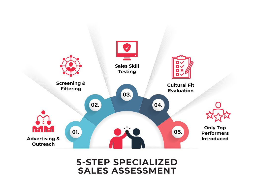 With our 5-step Specialized Sales Assessment method, you only pay when your new sales hire performs, eliminating financial risk while ensuring you get sales professionals who actually deliver results and stay long-term.